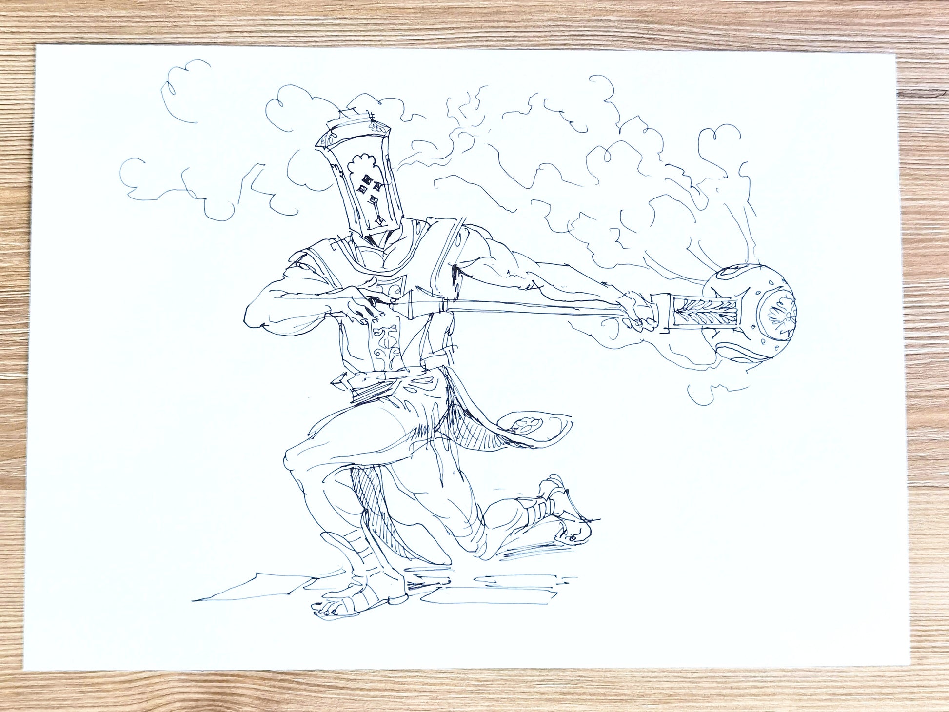 This is a black ink pen drawing on paper. On this series of drawings I take an spontaneous aproach, no underdrawing. I'm inspired by the drawing technique of the Old masters such as Goya or Rembrandt. I look back on my work for Blasphemous and revisit some of the characters one more time.