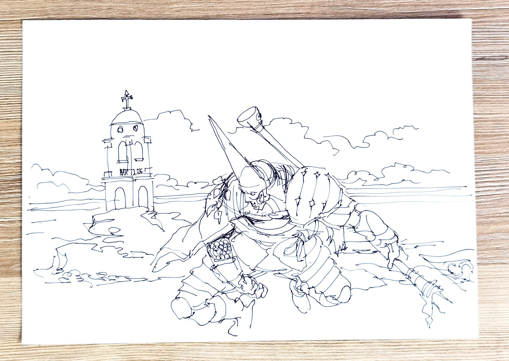 This is a black ink pen drawing on paper. On this series of drawings I take an spontaneous aproach, no underdrawing. I'm inspired by the drawing technique of the Old masters such as Goya or Rembrandt. I look back on my work for Blasphemous and revisit some of the characters one more time.